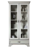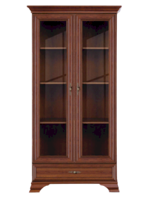 2 распашные двери со стеклянными вставками и 1 выдвижной ящик на металлических роликовых направляющих.