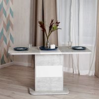 Кухонный стол Smart из коллекции Modern прекрасное решение простоты и функциональности. Прямоугольная столешница из ЛДСП толщиной 25 мм и оригинальная ножка-опора белого цвета и цвета бетон – идеальное сочетание для современного стильного пространства. Края стола оклеены прочной пластиковой кромкой толщиной 2 мм, что значительно продлит срок его службы. При необходимости можно быстро и легко увеличить размеры стола с помощью центральной секции, для этого используется механизм синхронного типа со стопором. Вставка стола легко убирается в ножку. За столом с комфортом могут разместиться от 4 до 6 человек. Эта стильная и комфортная модель станет любимым местом отдыха в вашем доме. Стол Smart отлично подойдёт для гостиной, для кухни или для загородного дома. Стол очень прост в сборке, инструкция по сборке прилагается.