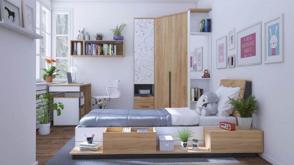 - Стеллаж устанавливается в качестве завершающего элемента и крепится к боковой стенке любого шкафа с помощью прилагаемых межсекционных стяжек