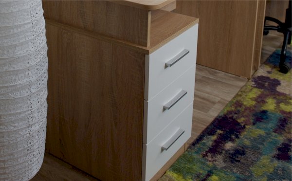 Стол письменный – удобное рабочее место для студента, школьника, отличное решение для кабинета с интерьером в скандинавском стиле. В столах системы Гарвард мягкие, удобные для опирающихся рук края, с кромкой в 2мм, а также, скруглённые углы столешницы. Корпус выполнен в теплом древесном цвете светлого дуба с приятной на ощупь фактурой, фасады - белые матовые. Нейтральные оттенки мебели позволяют легко вписаться уже в готовый интерьер.