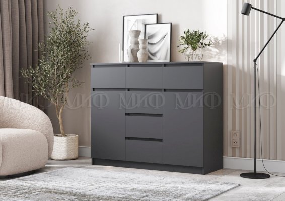 Комод Челси 1200 с 2 дверьми и 6 ящиками (Миф) – товар доступен к покупке в интернет-магазине tambovskiy-dommebeli.ru. Цена – 9 920 руб. без учета доставки. Стоимость дополнительных услуг и сроки получения мебели уточняйте у менеджера. Возможен безналичный расчет, оплата по карте на сайте.