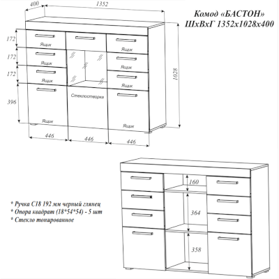 Комод Бастон (Эра) – товар доступен к покупке в интернет-магазине tambovskiy-dommebeli.ru. Цена – 13 552 руб. без учета доставки. Стоимость дополнительных услуг и сроки получения мебели уточняйте у менеджера. Возможен безналичный расчет, оплата по карте на сайте.