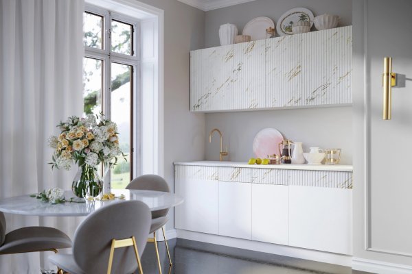 Модульная кухня Оливия Мрамор золото/Белый глянец холодный (Миф)